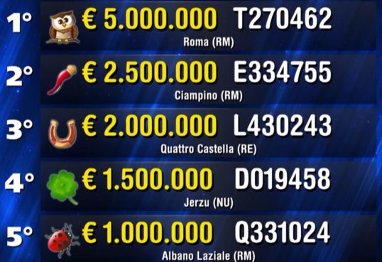 5° PREMIO DA 1 MILIONE: serie Q 331024 venduto ad Albano Laziale, provincia di Roma.