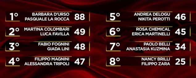 1. Barbara D’Urso e Pasquale La Rocca: 88 punti (50 punti del tesoretto)
