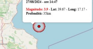 Terremoto, scossa nel distretto Tirreno Meridionale