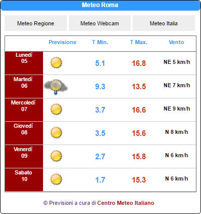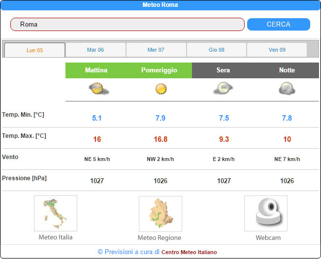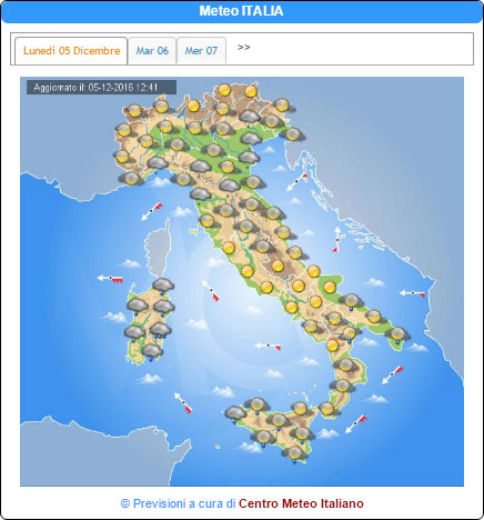 Benvenuti nella sezione dove troverete tutti gli Script per portare le previsioni meteo del Centro Meteo Italiano direttamente sul Vostro Sito o Portale.