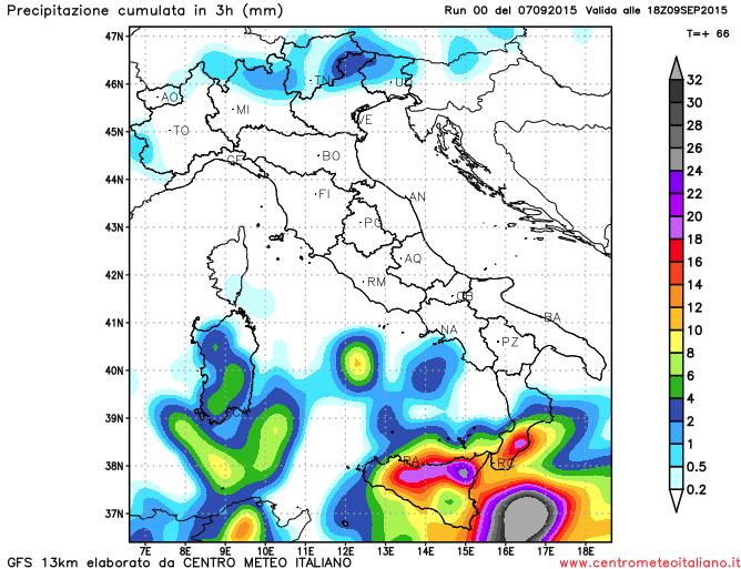 Allerta maltempo Sicilia e Calabria: nubifragi dalla notte di Martedì, 7 Settembre 2015 – Tempo in netto peggioramento nei prossimi giorni sulle Regioni Meridionale, in particolare sarà allerta maltempo per Sicilia e Calabria dove potranno verificarsi piogge abbondanti e temporali, anche a carattere di nubifragio. Per oggi la situazione sarà abbastanza tranquilla con tempo prevalentemente stabile salvo sporadici acquazzoni pomeridiani sulle zone interne della Sicilia. Peggiora da domani con primi temporali durante le ore pomeridiane sulla Sicilia interna, localmente anche intensi. Ma l'apice del maltempo sarà tra la notte di Martedì e la successiva giornata di Mercoledì quando due minimi di pressione transiteranno in prossimità della Sicilia portando abbondanti piogge sulle Regioni del Sud. Allerta maltempo Mercoledì per Sicilia e Calabria, soprattutto versanti Ionici che potranno vedere accumuli di pioggia con punte anche superiori ai 100 mm. Il rischio di nubifragio su queste due Regioni è concreto, vi consigliamo dunque di seguire tutti i prossimi aggiornamenti per l'evoluzione sull'allerta maltempo per Sicilia e Calabria.