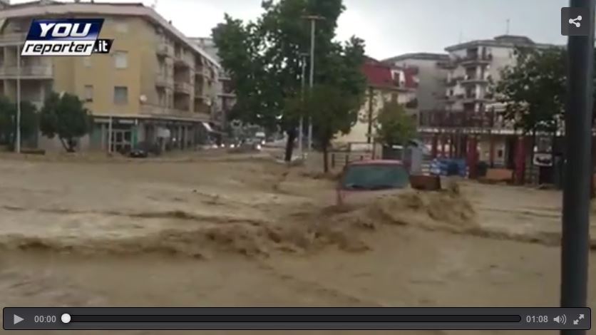 Alluvione in provincia di Cosenza: auto trascinata in diretta a Corigliano – 12/08/2015 – Forti temporali con grandine, raffiche di vento, trombe d’aria e nubifragi stanno colpendo in questo momento molte regioni del Sud Italia, in particolar modo Calabria, Basilicata e Puglia, e questi fenomeni sono stati causati dal transito della perturbazione numero Uno del mese di Agosto. Tra domani e Venerdì avremo un veloce promontorio stabile in arrivo dal Nord Africa con temperature in momentaneo rialzo, poi Sabato e Domenica arriverà la perturbazione numero Due di Agosto.
