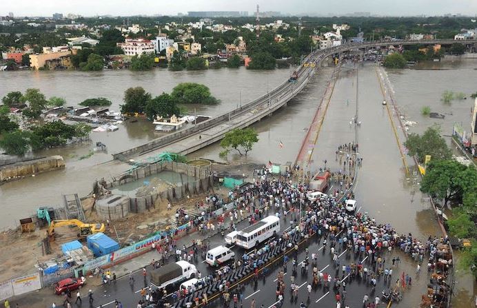 Ancora allarme alluvioni in India con forti piogge cadute nella capitale Chennai, il bilancio provvisorio delle vittime sale a 325
