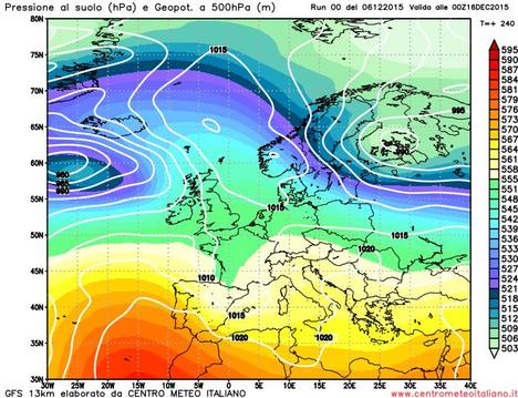 Analisi Modelli Gfs 00Z del 06 dicembre 2015: cedimento dell’anticiclone e ritorno del maltempo invernale?