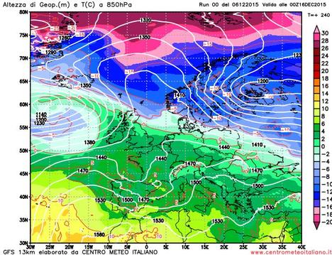 Analisi Modelli Gfs 00Z del 06 dicembre 2015: cedimento dell’anticiclone e ritorno del maltempo invernale?, 6 Dicembre 2015 – Un campo di alta pressione così robusto e duraturo è deleterio per la stagione invernale, non solo per le Alpi che tuttora risultano prive di neve ma anche perché a causa delle inversioni termiche la qualità dell’aria nelle grandi città peggiora di giorno in giorno con i gas inquinanti e le polveri sottili che ristagnano al suolo. Questo anticiclone delle Azzorre che governa il clima sull’Europa centro occidentale è posizionato con in suoi massimi sul Mediterraneo Centro-Orientale, associato a valori di pressione a livello del mare fino a 1035 hPa. Questo impedisce ancora alle perturbazioni atlantiche di raggiungere la nostra Penisola, determinando una lunga fase stabile caratterizzata anche da un aumento delle temperature al di sopra delle medie del periodo. Attenzione però: con la stabilità persistente resteranno diffuse e localmente fitte le nebbie e le foschie soprattutto sulle pianure e nelle vallate del Centro Nord, con i cieli che a tratti si presenteranno notevolmente coperti […]