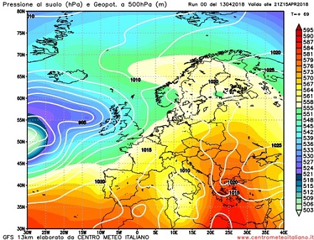 Analisi modelli GFS00Z: momentanea fase di tempo in prevalenza stabile sull’ Italia tra oggi e domani, a seguire ancora piogge e rovesci pomeridiani – 13 Aprile 2018 – Fine settimana all’ insegna della variabilità sull’ Italia con il sole prevalente nella giornata di oggi salvo residui rovesci pomeridiani al nord, bel tempo con sole prevalente nella giornata di domani, Sabato 14 Aprile, nuovo peggioramento in arrivo nella giornata di domenica 15 Aprile quando è atteso l’arrivo di un nuovo vortice depressionario che porterà piogge diffuse al centro-sud. Il flusso di correnti umide e perturbate che scorre sull’Europa occidentale determina una fase di tempo variabile con piogge alternate a brevi pause più stabili. Durante la prossima settimana poi insisterà sul bacino del Mediterraneo centrale una blanda circolazione depressionaria in grado di generare ancora piogge e rovesci pomeridiani specie sui settori interni del centro-sud Italia.
