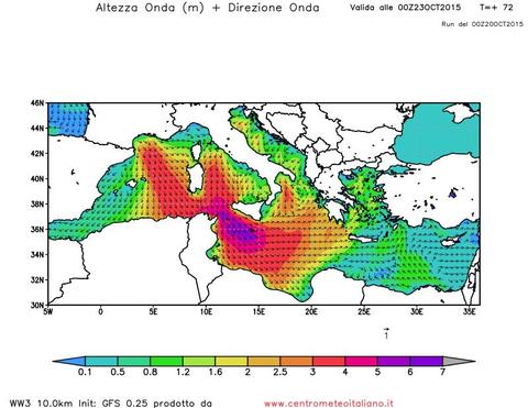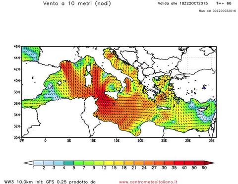 Giovedì 22 Ottobre avremo un ciclone Mediterraneo poco a Nord della Sicilia con forti venti a rotazione ciclonica. Venti prevalenti di Tramontata e Bora sull’Italia con raffiche oltre i 50/60 km/h. Nel pomeriggio vento di burrasca sul Canale di Sicilia con venti fino a 90 km/h da Nord/Nord-Ovest e possibili mareggiate su Sicilia e Isole minori. Mosso o molto mosso l’Adriatico e lo Ionio, agitato il basso Tirreno con onde fino a 6-7 metri di altezza sul Canale di Sicilia. Poco mossi invece i bacini settentrionali come alto Adriatico e Mar Ligure. Seguite tutti i prossimi aggiornamenti per ulteriori dettagli.