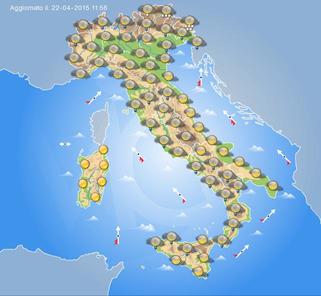 Giovedì 23 Aprile 2015: molte nubi in transito con locali piogge sull'Italia