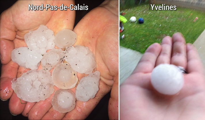 Violenti temporali hanno colpito Francia, Paesi Bassi e Belgio nel corso del pomeriggio di oggi, 5 Giugno 2015: grandine fino a sei centimetri