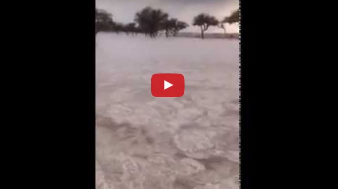 Un fiume è esondato dopo una intensa grandinata nel nord dell'Arabia Saudita, creando una vera e propria inondazione di ghiaccio
