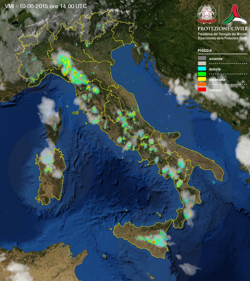 Ancora diffusa instabilità di stampo pomeridiano sull'Italia, con rovesci e temporali che si stanno formando sui rilievi sia alpini che appenninici. Fonte: protezionecivile.gov.it