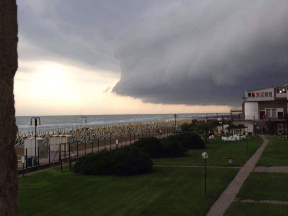 Violenta fase di maltempo al Nord-Est, spettacolare shelf cloud sulle coste del Veneto, foto dell’evento