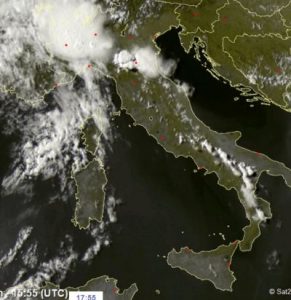 Maltempo: intensi nuclei temporaleschi colpiscono il Nord Ovest in questo momento – Una vasta cellula temporalesca sta colpendo in queste ore le regioni nord occidentali, provocando accumuli precipitativi molto elevati a confine tra la Lombardia e il Piemonte. In base a quanto appreso dall’immagine satellitare che vi mostriamo a fianco, il nucleo temporalesco ha rapidamente sorvolato l’arco alpino occidentale, riprendendo vigore a ridosso delle pianure pedemontane e sui settori rilevati centro-settentrionali piemontesi: alcune stazioni pluviometriche presenti nell’alto biellese mostrano infatti come i cumulati pluviometrici abbiano raggiunto valori nell’ordine dei 90 millimetri giornalieri. L’evento, essendosi verificato nel giro di pochissime ore, potrebbe aver causato alcuni danni e nelle prossime ore arriveranno ulteriori informazioni in tal senso. Temporali molto intensi hanno colpito inoltre l’Emilia-Romagna, con nuclei precipitativi che sono avanzati a partire dall’arco appenninico bolognese fin verso il capoluogo emiliano.