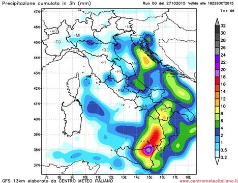 Maltempo Italia: piogge e temporali anche intensi nei prossimi giorni, 27 Ottobre 2015 – Un vortice depressionario, con aria più fredda in quota, si sgancerà dal flusso Atlantico nelle prossime ore e si dirigerà verso il Mediterraneo portando maltempo sull’Italia tra Mercoledì 28 e Giovedì 29 Ottobre. Previste piogge e temporali da Nord a Sud, localmente anche di forte intensità. Il vortice depressionario transiterà molto velocemente e già da Venerdì avremo una generale attenuazione del maltempo sull’Italia. Vediamo dunque quali saranno le Regioni maggiormente coinvolte dal maltempo […]