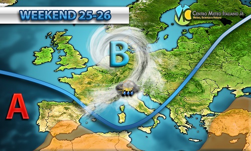 Perturbazione in transito sull’ Italia e piogge o temporali sparsi, maltempo specie al centro. Migliora dalla sera.