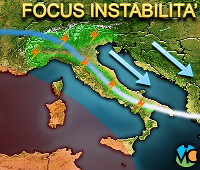 Al Centro: Al mattino tempo stabile su tutte le regioni con cieli in prevalenza sereni o al più poco nuvolosi. Al pomeriggio instabilità in aumento lungo l’Appennino con piogge e temporali sparsi, localmente anche intensi, più asciutto altrove. In serata nuvolosità irregolare su tutti i settori ma con tempo asciutto salvo residue piogge sui settori interni. Temperature minime e massime stazionarie o in rialzo. Venti deboli di direzione variabile. Mari poco mossi o quasi calmi.