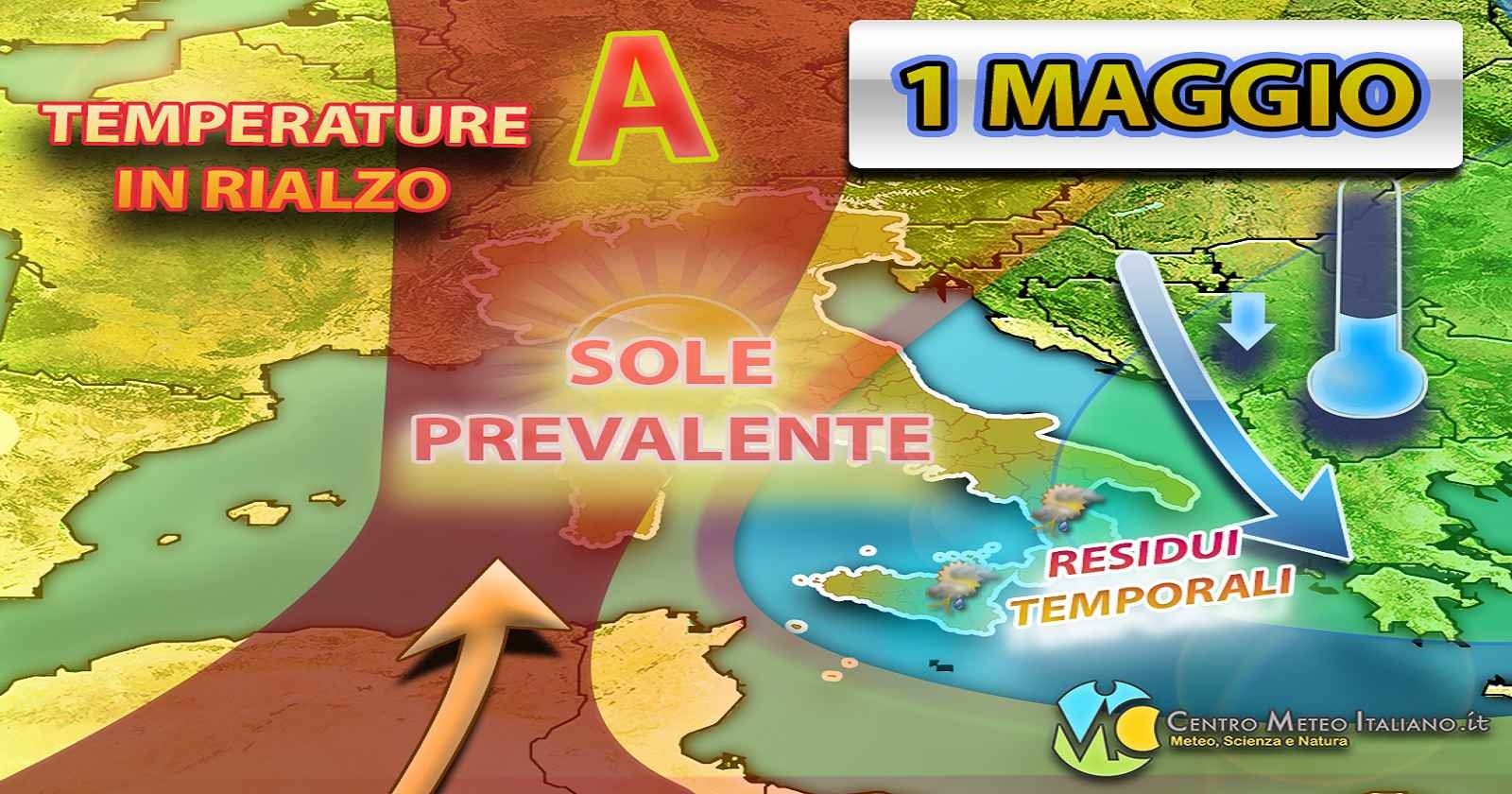 Fronte freddo che nella giornata di venerdì, festa del Primo Maggio, tenderà a scivolare verso sud-est, lasciando spazio ad un aumento del campo barico sul Mediterraneo centro-occidentale. Condizioni meteo dunque in generale miglioramento sull'Italia con ampie schiarite che renderanno i cieli soleggiati. Residui temporali saranno però ancora possibili tra Calabria e Sicilia. Il clima risulterà fresco a causa dell'aria fredda che continuerà ad affluire da nord-est, con valori sotto media specie sul medio versante adriatico ed al Sud. Diffuso bel tempo nel weekend, con le temperature che tenderanno gradualmente a riprendersi verso valori primaverili.