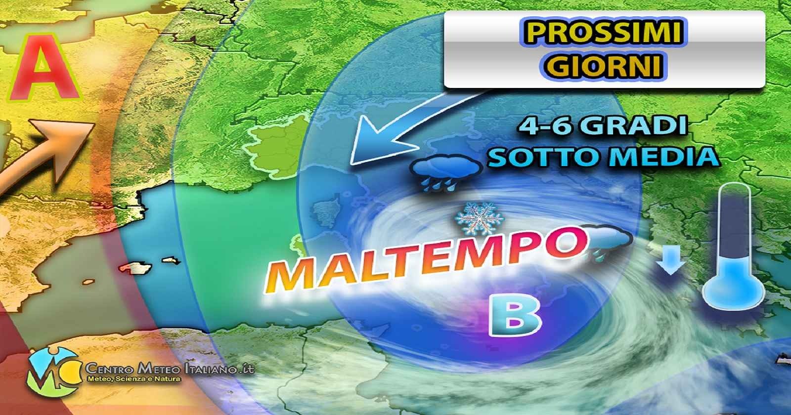 Struttura depressionaria attiva fino a Giovedì, maltempo e temperature sotto media