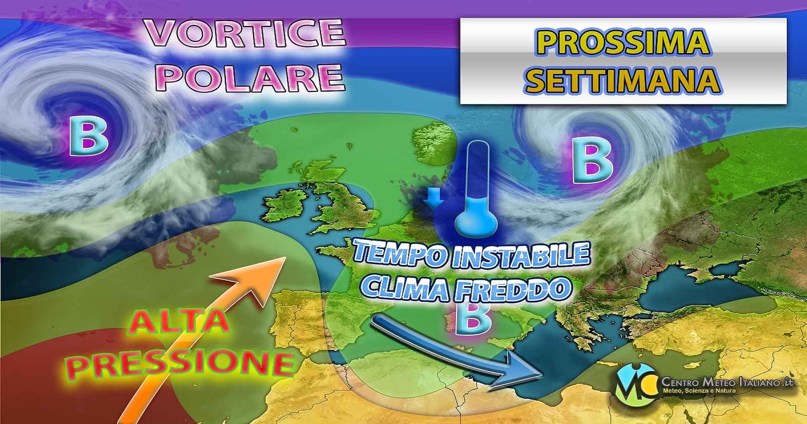 Un nuovo impulso di maltempo tuttavia si prepara ad interessare l'Italia già dalla giornata di lunedì 24 novembre, e questa volta presenterà caratteristiche fisiche diverse, dal momento che l'origine sarà polare marittima con componente più oceanica. Di conseguenza, soprattutto al centro-sud e nonostante i fenomeni localmente anche intensi e a carattere di nubifragio, le temperature sono previste in lieve rialzo su valori comunque non oltre la media di riferimento, con clima pertanto tardo-autunnale alla peggio.