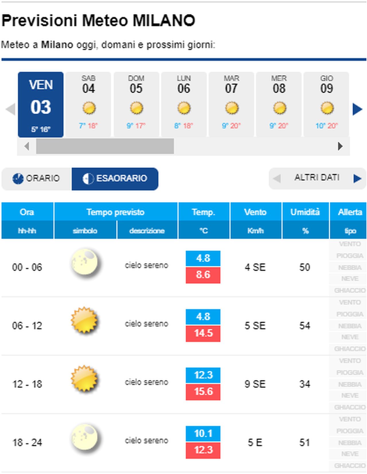 PER TUTTI I DETTAGLI SULLE PREVISIONI METEO DI MILANO, CONSULTATE IL NOSTRO SITO.