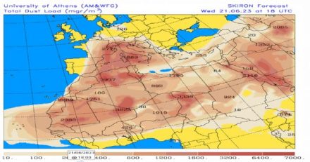 Dust previsto per mercoledì 21 giugno dal modello SKIRON; fonte University of Athens