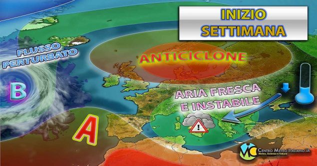 Prossima settimana fortemente instabile, dapprima al centro-sud poi anche al nord