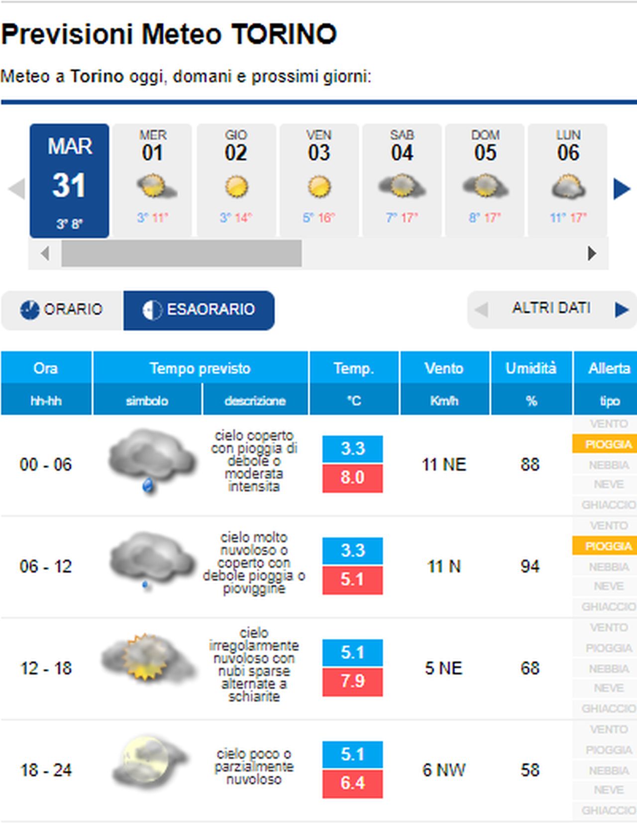 PER TUTTI I DETTAGLI SULLE PREVISIONI METEO DI TORINO, CONSULTATE IL NOSTRO SITO.