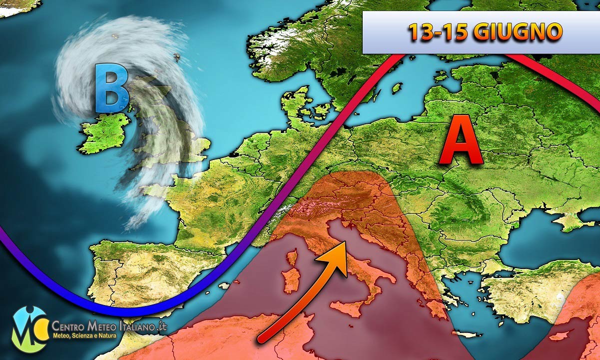 Correnti fresche e instabili provenienti dall’Atlantico favoriranno la formazione di qualche temporale, caldo in attenuazione nel weekend.