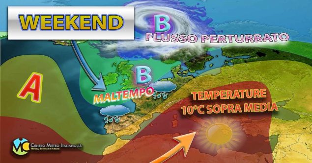 Nel corso del weekend il robusto anticiclone tenderà a spostare i suoi massimi verso est, sull’Europa orientale, mentre la saccatura depressionaria si avvicina dall’Atlantico all’Europa occidentale. Weekend prevalentemente stabile e con caldo intenso in Italia, con temperature anche di 6-8 gradi al di sopra delle medie del periodo. Ma nella giornata di domenica, stando agli ultimi aggiornamenti dei principali modelli, sono in arrivo le prime infiltrazioni umide e instabili al Nord-Ovest, con l’aumento della nuvolosità e la possibilità di arrivo anche di piogge e temporali, ma con incertezza comunque ancora elevata.