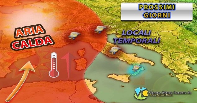 Come appena visto alta pressione distesa anche sul Mediterraneo, ma una piccola goccia fredda, colpevole dell’instabilità dei giorni scorsi, è in questa seconda parte di settimana in lento movimento dal Tirreno meridionale verso lo Ionio. Sull’Italia attese dunque giornate soleggiate, ma non mancheranno temporali pomeridiani specie nelle zone interne del Sud e delle Sicilia, con fenomeni anche intensi su quest’ultima e dei fenomeni in sviluppo anche lungo l’arco alpino e sull’Appennino centro-settentrionale con locali sconfinamenti. Caldo intenso in Italia con temperature anche di 4-6 gradi sopra le medie al Centro-Nord, più vicine alle medie al Sud ed anche leggermente sotto media sulla Sicilia.