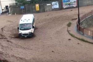 Nubifragio: violentissimo temporale trasforma le strade di Vibo Valentia in fiumi di fango. Vigili del Fuoco mettono in salvo numerose persone. La pioggia non sta smettendo di cadere