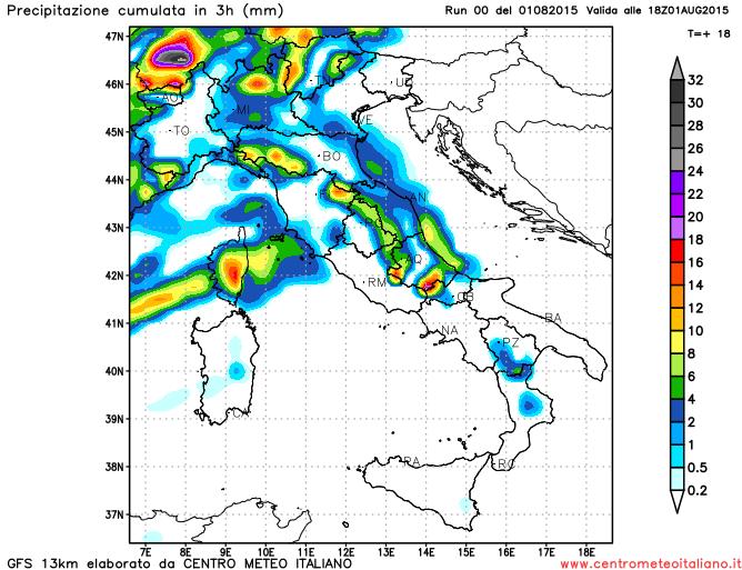 Piogge e temporali oggi al Centro-Nord, localmente anche intensi, 1 Agosto 2015 – Il transito sulla nostra Penisola di un piccolo cavetto d'onda di origine Atlantica porterà tempo instabile per la giornata di oggi 1 Agosto 2015. Le correnti in quota, più fresche e umide provenienti dai quadranti Occidentali o Sud-Occidentali attiveranno condizioni di instabilità sulle Regioni del Centro-Nord mentre al Sud il promontorio di alta pressione garantirà tempo stabile. Al mattina molta nuvolosità al Nord con piogge sparse prevalentemente su Regioni di Nord-Ovest, più stabile al Centro ma con nuvolosità in aumento a partire da Ovest. Al pomeriggio piogge e temporali di diffusi al Centro-Nord, più intensi su Alpi Occidentali e sull'Appennino Centrale. Asciutto lungo le coste di Nord-Est e Tirreniche. In serata precipitazioni diffuse su gran parte del Nord, localmente intense al Nord-Est in particolare tra Veneto e Romagna. Piogge sparse anche al Centro soprattutto su Umbria, Marche e Abruzzo. In nottata peggiora con temporali in arrivo dal mare anche sulla Toscana. Migliora invece a partire dalle Regioni di Nord-Ovest.