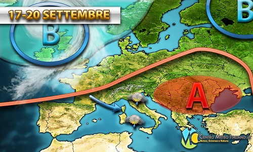 Previsioni Meteo: ultima settimana d’estate secondo il calendario astronomico con maggiore instabilità in Italia – 17 Settembre 2018 – Temporali pomeridiani ora più probabili in quest’ ultima settimana dell’ Estate specialmente sui settori interni di Emilia Romagna, Toscana, Umbria, Lazio, Marche, Abruzzo, Sardegna e Sicilia. Le previsioni meteo per le prossime ore e i prossimi giorni vanno verso un lieve peggioramento in Italia, avremo tuttavia clima gradevole e piuttosto mite con le temperature ancora tipiche di tarda estate. La situazione sinottica attuale vede infatti l’ Anticiclone in azione sull’Europa centro-orientale con valori pressori fino a 1025 hPa e una saccatura di bassa pressione subordinata alla vasta depressione nord-Atlantica raggiungere la penisola Iberica con valori pressori anche al di sotto dei 1010 hPa. Parte delle correnti instabili atlantiche in arrivo sulla penisola iberica raggiungono anche l’ Italia determinando qualche temporale pomeridiano.