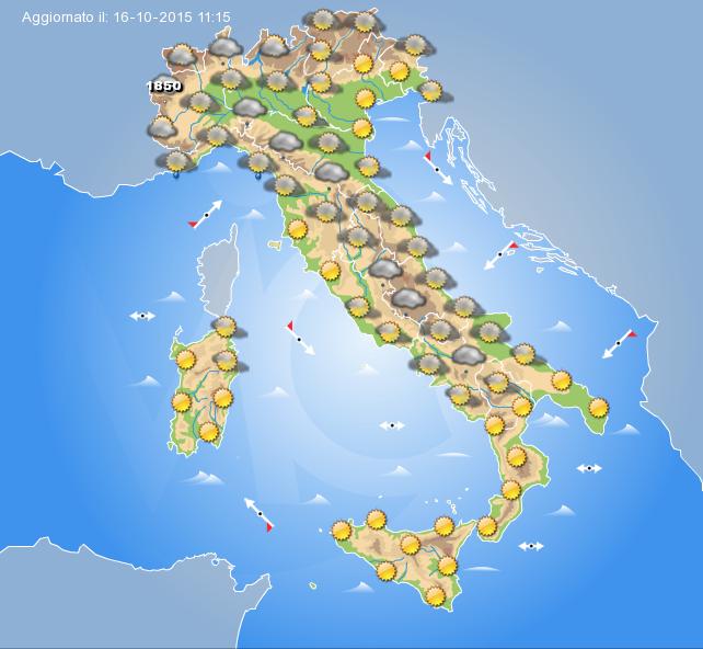 Meteo Domani 17 Ottobre 2015: tempo in miglioramento sull’Italia ma ancora con locali e deboli piogge sparse specie al Centro-Nord.