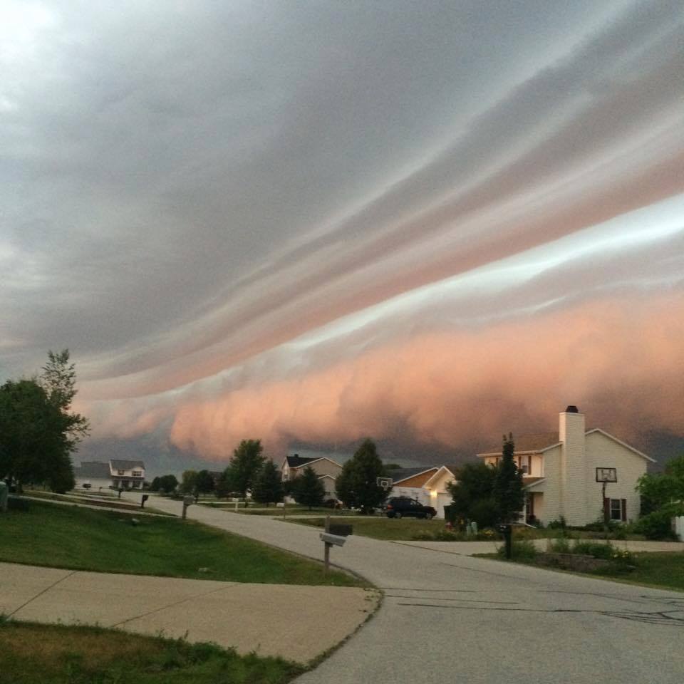 Shelf cloud in Wisconsin, diffuse foto eccezionali – 19/07/2015 – Ieri, Sabato 18 Luglio 2015, sui cieli del Wisconsin, Stati Uniti centro-settentrionali, è stato osservato uno spettacolo che gli abitanti non dimenticheranno tanto facilmente. Si è trattato di una shelf cloud multistrato, in gergo chiamata anche mothership cloud, una nube accessoria che si forma davanti ai temporali maggiormente violenti e meglio organizzati, e negli Stati Uniti tali temporali eccezionali si formano con una facilità molto maggiore rispetto che nei restanti paesi del mondo.