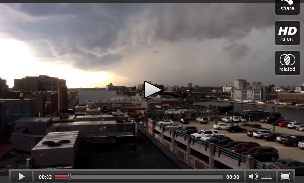 Tempesta arriva su Boston, video in timelapse – Nei giorni scorsi la città americana di Boston è stata investita da una tempesta di una certa entità, accompagnata da chicchi di grandine di notevoli dimensioni, raffiche di vento che hanno provocato la caduta di alberi, e allerte per possibili tornado nei dintorni della città. Una telecamera ha catturato l'arrivo dell'intensa tempesta in rotazione, mostrada con il filmato montato con la tecnica del timelapse. Video che consente di osservare come in pochi istanti la luce del sole venga completamente oscurata lasciando spazio a venti forti che hanno superato le 70 miglia orarie e intense piogge che hanno provocato alcuni allagamenti nella città americana.