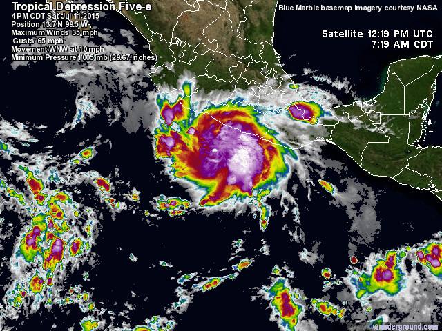 Tempesta tropicale Dolores a Sud del Messico minaccia le coste – 12/07/2015 – Si chiama Dolores la nuova tempesta tropicale che si è formata a Sud delle coste del Messico, a causa dell’importante aumento delle temperature superficiali degli oceani a causa del fenomeno del Nino. La tempesta potrebbe ben presto raggiungere lo stadio di uragano tropicale di prima categoria, in quanto è atteso una sua intensificazione nelle prossime ore.