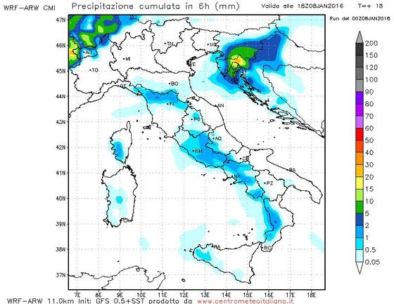 Nel pomeriggio deboli piogge su Liguria Orientale, Romagna e coste del Friuli. Pioviggini anche su Campania, Calabria e localmente sulle Isole Maggiori. In serata ancora pioviggini sparse su Liguria, Appennino Settentrionale, Emilia Romagna, Toscana, zone interne del Lazio, Campania e Calabria. Insistono i fenomeni anche nella notte sempre sugli stessi settori con locali nevicate sulle Alpi Occidentali oltre i 1500 metri di quota.