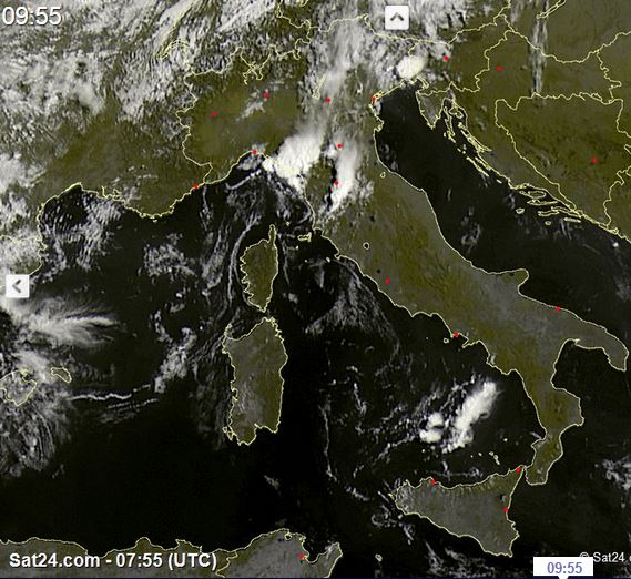 In questo momento violenti temporali stanno colpendo la Liguria orientale, la Toscana settentrionale e parte del Friuli-Venezia Giulia, con quest’ultima regione che sta per assistere ad i temporali più forti in quanto nell’area c’è grande quantità di shear ed energia che potrebbe dar luogo a fenomeni particolarmente violenti. Possiamo notare anche la formazione di temporali nel basso Tirreno, frutto di un’isolata area di bassa pressione.