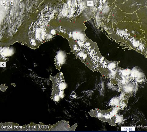 Come vediamo da scatto satellitare allegato, i temporali sulle aree interne del Centro-Sud sono in pieno sviluppo e sono molto forti. Fenomeni violenti vengono segnalati sul settore Est della Sardegna e sul Nord della Sicilia, con sconfinamenti in mare, sullo Stretto di Messina e sulle Isole Eolie. Nubifragi con grandine hanno colpito e stanno colpendo zone interne di Puglia, Basilicata e Calabria, mentre negli ultimi 45 minuti si sono formati temporali visibilmente violenti sul Lazio, Toscana ed Emilia-Romagna.