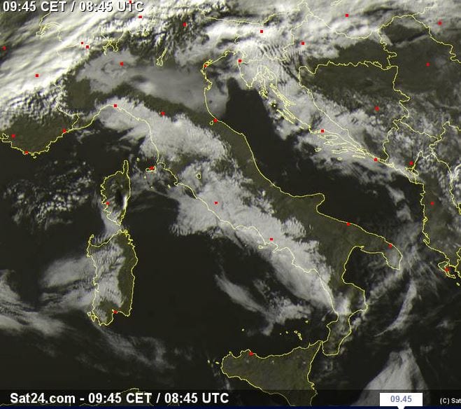 Tempo in atto sull’Italia: infiltrazioni umide da Sud, nubi sparse e piovaschi sul Tirreno – sat24.com