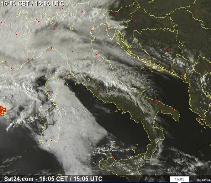 Insolita la presenza di nebbie e nubi basse sul Tirreno a questo punto della giornata in questa forma e concentrazione. Dei locali temporali si sono formati a Nord della Sicilia, mentre fenomeni più intensi vengono segnalati ad Ovest della Sardegna: è proprio qui che la perturbazione numero Cinque del mese di Marzo si sta addensando, e con il passare delle ore assisteremo alla genesi di fenomeni via via più intensi. Al Nord e sul medio versante Adriatico abbiamo nubi medio-alte, senza fenomeni correlati. Clicca qui per vedere la tendenza per i prossimi giorni