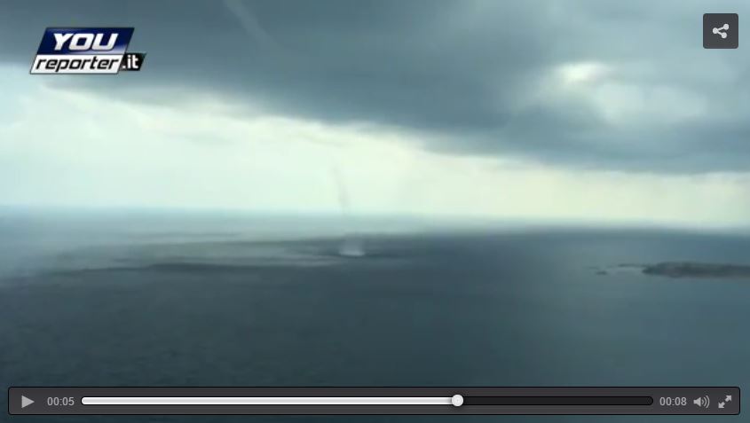 Possiamo vedere il video della tromba marina di questa mattina qui di seguito: il filmato, preso sul sito Youreporter, ci mostra la tromba marina in tutto il suo spettacolo vista da un elicottero che stava circolando nei pressi del vortice.