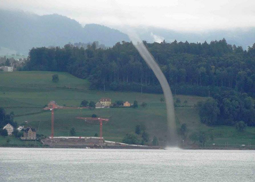 Tromba marina in Svizzera: vortice tocca l'acqua sul lago di Zurigo – video, 7 Settembre 2015 – Sul lago di Zurigo, la mattina di Sabato 5 Settembre 2015, si è verificato un fenomeno alquanto abbastanza raro per la zona: una tromba marina (o waterspout) si è infatti formata e ha toccato le acque del lago Svizzero durante la mattinata. L'avvistamento è stato riportato dall'ufficio meteorologico svizzero (SRF) che ha poi spiegato che le trombe marine posso formarsi anche in situazione di venti deboli, infatti quelli registrati al momento della comparsa del vortice non superavano i 30 km/h. Questo fenomeno può formarsi quando gli strati di aria più fredda e instabile entrano in contatto con la superficie più calda dell'acqua. Sabato mattino la temperatura del lago era intorno ai +22 gradi mentre quella dell'aria nei dintorni di Zurigo arrivava appena a +13 gradi. Anche se piuttosto rari in Svizzera, le trombe marine sono per lo più avvistate proprio durante il periodo autunnale quando la differenza termica aria/acqua si fa più marcata. Di seguito lo spettacolare video che ha immortalato l'evento.