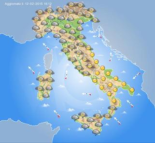 Al Nord: Al mattino nuvolosità in aumento sensibile su tutto il settore, ad iniziare dalla Liguria, dove non si escludono deboli ed occasionali pioviggini. Al pomeriggio cieli nuvolosi o molto nuvolosi su coste e settori di pianura con deboli locali precipitazioni su Liguria interna. In serata cieli molto nuvolosi o coperti su tutto il settore con deboli piogge in estensione da Ovest verso Est. Neve oltre 700-1200 metri. Temperature minime stazionarie e massime in calo. Venti deboli dai quadranti Settentrionali. Mari poco mossi o localmente mossi.