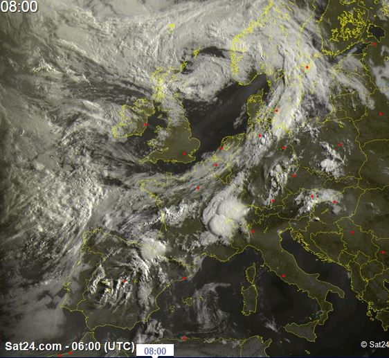 I temporali più intensi sono segnalati al confine tra Francia e Svizzera: qui sono caduti chicchi di grandine di media dimensione poco fa (segnalazione sui forum meteo francesi di chicchi fino a 5 centimetri di diametro) mentre si nota la presenza di celle temporalesche molto forti sulle Repubbliche Baltiche e sulla zona dei Pirenei.