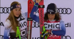 Vittoria per la statunitense Shiffrin, 2:19.63, che approfitta dell’uscita di Marta Bassino e Petra Vhlova. Seconda Federica Brignone a +0.82 nonostante un errore che la stava facendo andare fuori gara. Purtroppo è uscita Marta Bassino (inforcata). Completa il podio la francese Worley. Nona Sofia Goggia