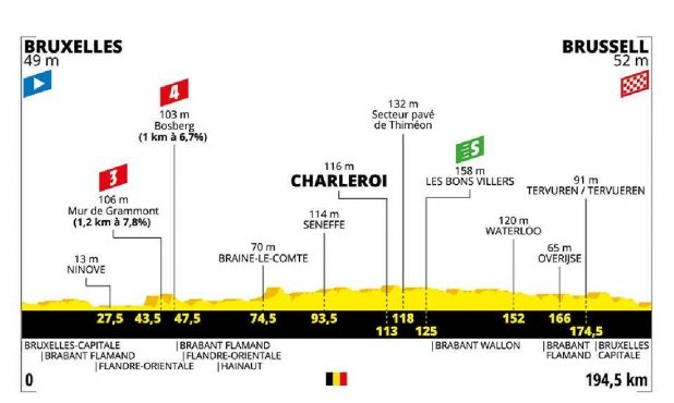 Finalmente ci siamo! Oggi, sabato 6 luglio 2019 inizia la Grande Boucle con una tappa che non presenta particolari difficoltà per i corridori. Il percorso misura 194,5 chilometri, si parte in Belgio, a Bruxelles con oltre 40 km molto agevoli, al 43,5 km è collocato il Mur de Grammont, un GPM di terza categoria, da raggiungere attraverso una salita di 1,2 km con pendenza media al 7,8%. Il tempo di scendere e subito dopo al km 47,5 c’è un altro GPM ma di 4^ categoria, il muro in Pavè Rosberg che sarà raggiunto con una scalata di 1 km al 6,7% di pendenza media. I restanti 150 chilometri saranno prevalentemente pianeggianti. Probabile arrivo in volata sempre a Bruxelles.