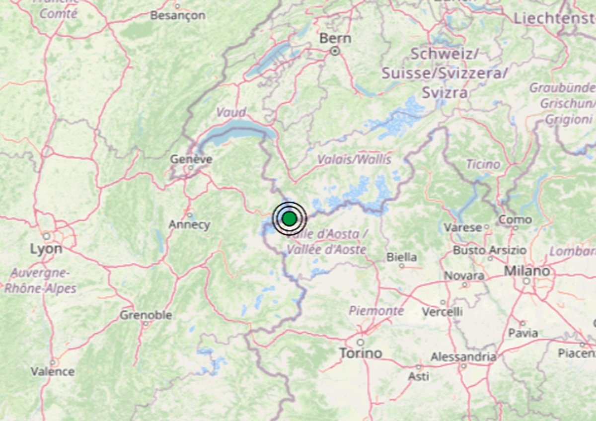 Terremoto oggi in Valle d'Aosta, 15 novembre, scossa M 2.4 in provincia di Aosta – Dati Ingv