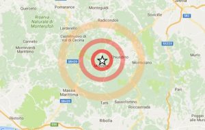 L’Istituto nazionale di geofisica e vulcanologia ha registrato nella mattinata di oggi, martedì 14 agosto 2018, una scossa di terremoto in Toscana, a Montieri, in provincia di Grosseto, con ipocentro a profondità 10 chilometri, 34 Km a SW di Siena e 41 Km a N di Grosseto. Registrata alle ore 5:18 una scossa di M. 2.1 sul Tirreno Meridionale con ipocentro a 76 km di profondità. Alle ore 8:39 nuova scossa a Montieri (GR) di M. 2.0 ed ipocentro a 11 km. Alle ore 13:25 sisma di M. 2.2 sul Tirreno Meridionale con ipocentro a 159 km.